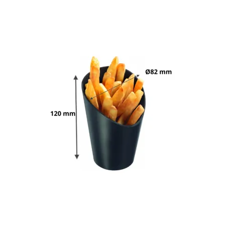 - Une barquette pour frites de couleur noire, spécialement prévue pour la consommation sur place