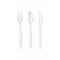 Vous pouvez aussi acheter nos fourchettes, couteaux et cuillères en plastique cristal réutilisables en kit
